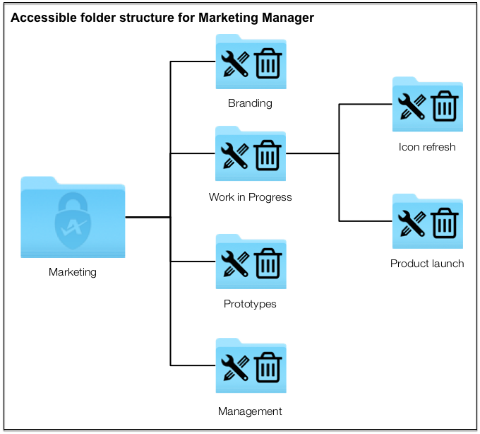 - Structure your data so that users have Read-Only permissions on the first level (Marketing > Branding) and, for instance, Create & Modify permissions to some second level folders (Marketing > Branding > Work in Progress). This allows the users to work out of the second level folder. While they can still view the higher level folders, they can't change anything.