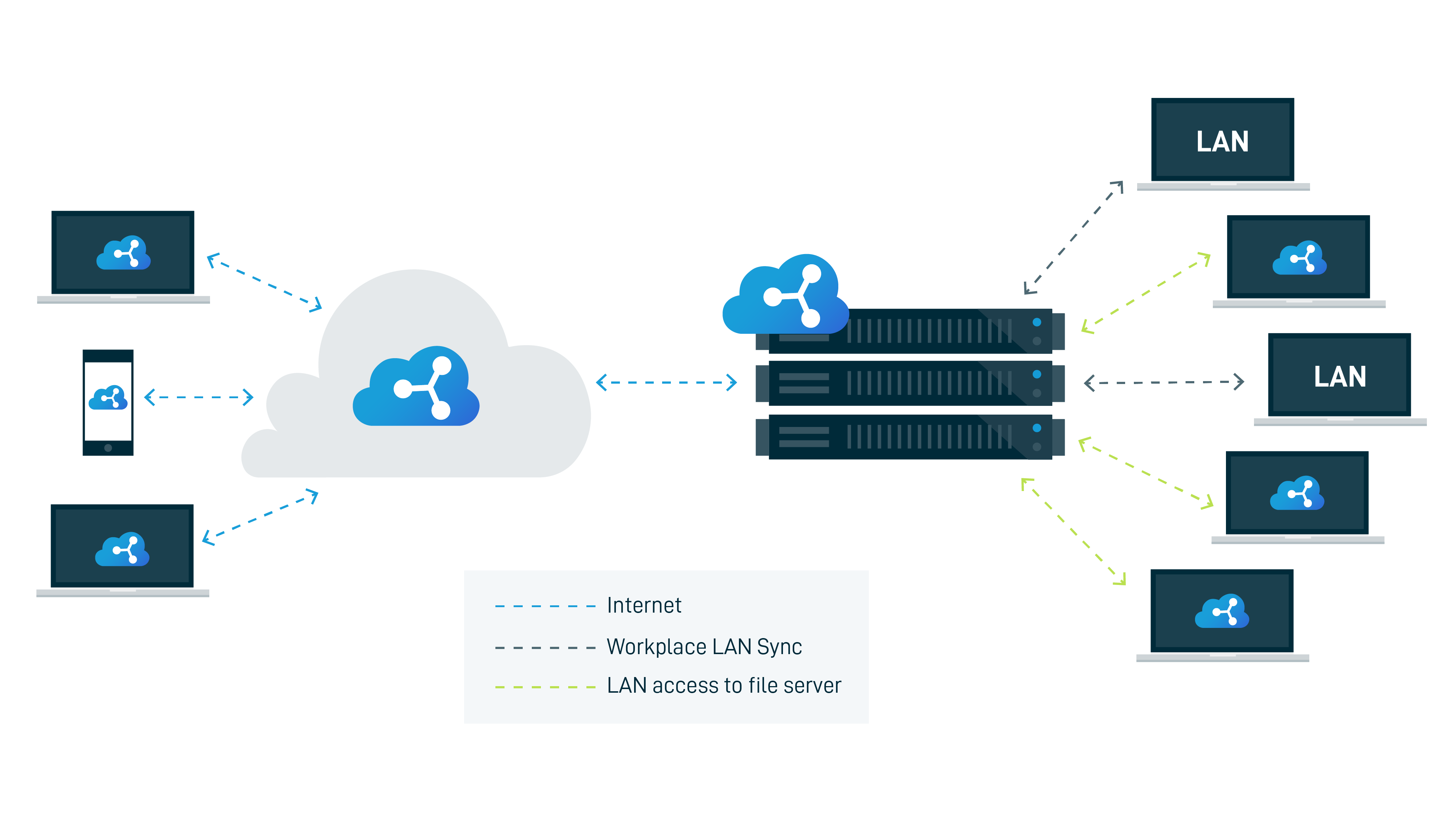 Workplace Server must be installed on the LAN to facilitate syncing between the local file server and Workplace.