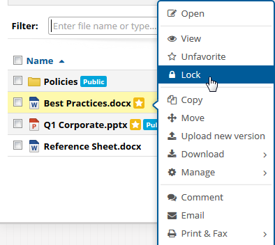 - Right-click the file and select Lock: