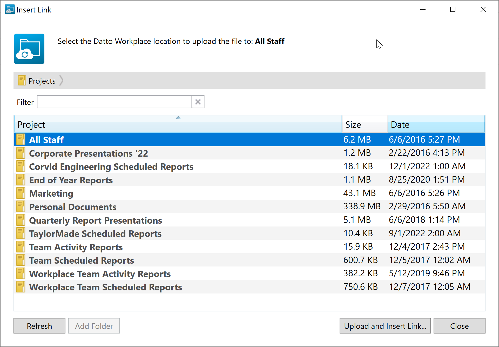 TIP If you suspect the content of your Workplace folder has changed since you opened this window, click the Refresh button to update the available folders and files.