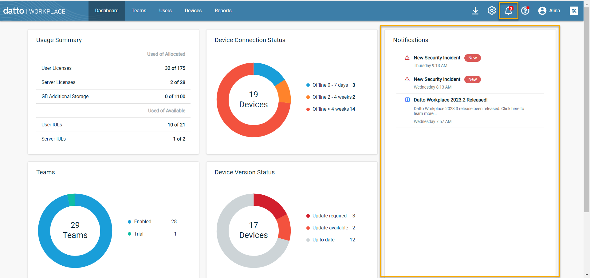 NOTE In order to optimize your Dashboard space and display only the most useful information, we've retired several less helpful widgets.