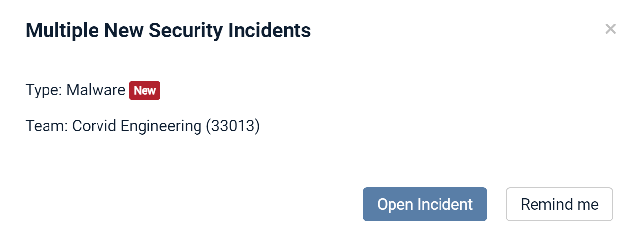 For critical alerts like security incidents, you can choose the reminder option or open the incident: