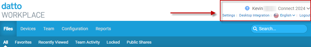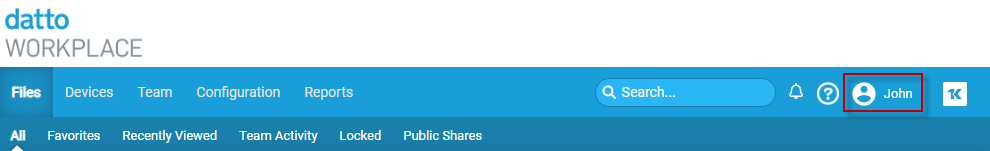 The Workplace Online header has been reconfigured so that the user options are accessible through the tab header.