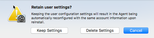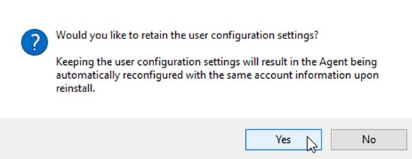 - Click Uninstall. The Would you like to retain the user configuration settings? prompt appears: