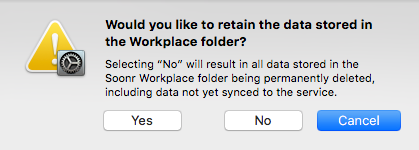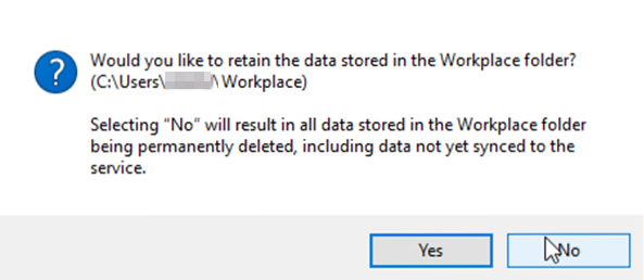 IMPORTANT Click Yes to retain your Workplace data. If you click No, you will lose all Workplace data currently stored on your machine.