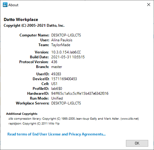 TIP  To copy or create information that you might need in your support inquiry, right click center of the window and select one of the available options. Refer to Find Your Workplace app log files for details.