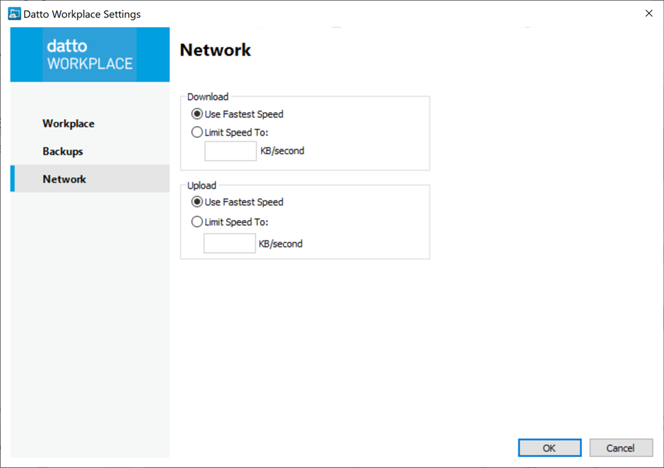 Select the Use fastest speed check box to allow Workplace to use the fastest speed available between set hours, then specify a time slot when the maximum speed can be used. To disable this feature, clear the check box. |