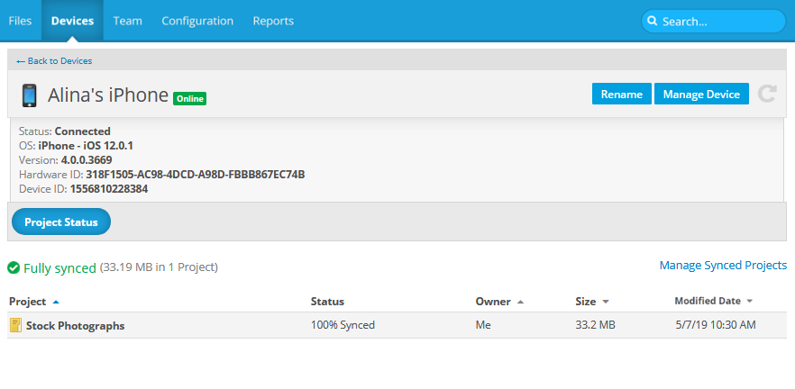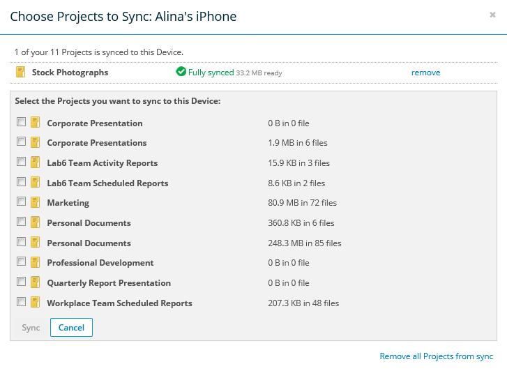 NOTE When you remove projects from sync, files are not removed from the cloud. They are removed only from the device's Workplace folder.