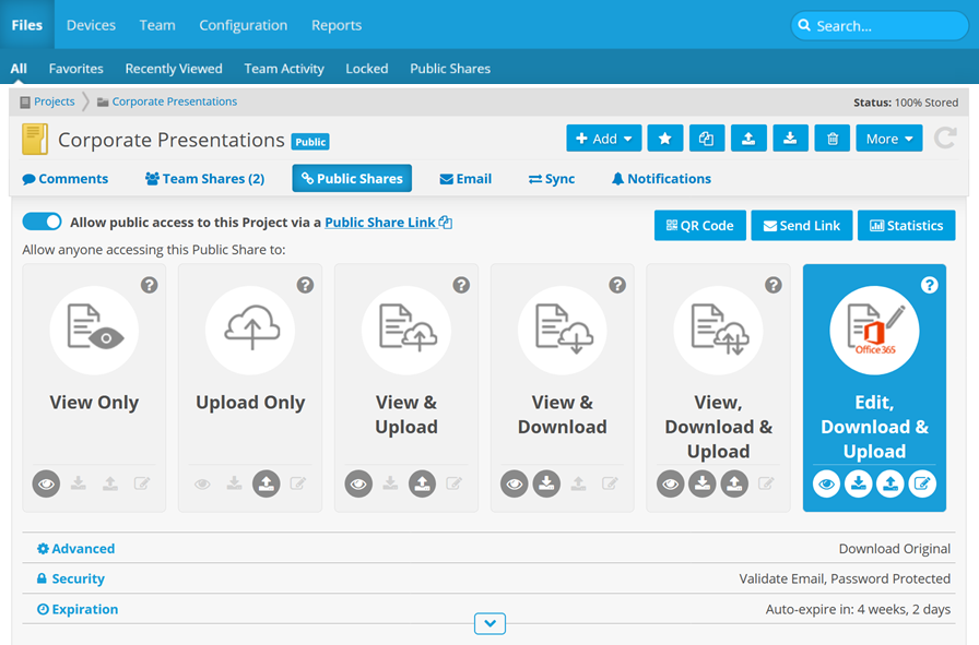 | View & Download | Share recipients can view or download files via web browser. |