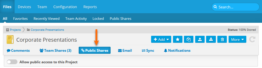 A public share can be created for any project, folder or file.