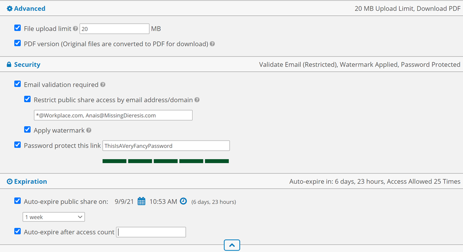 | Auto-expire public link* |