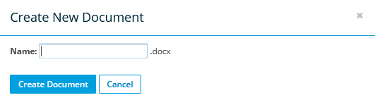 | Word Document | Add a Word document to your folder. This will open the Create New Document popup window.![]() Enter the document name, then click Create Document. Refer to Creating and editing documents online. |
