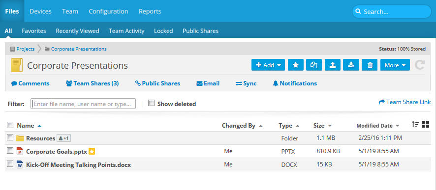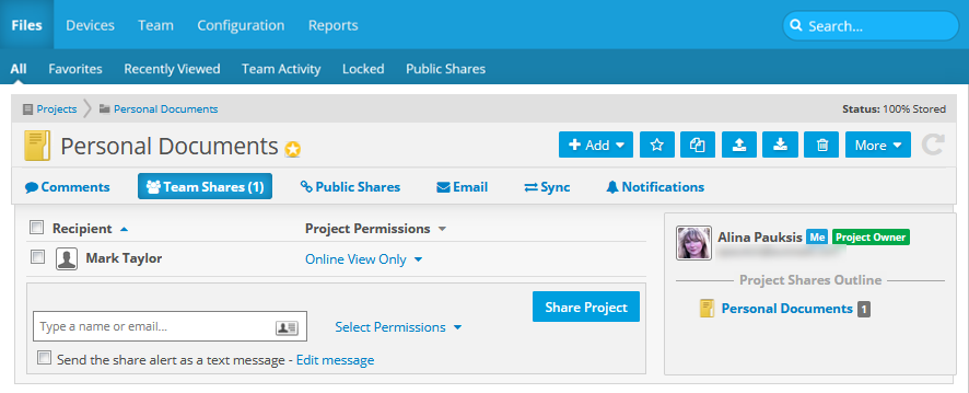 | Share | Team Share This option is only available if you are the project owner or Reshare permissions were granted when the folder was shared with you. |