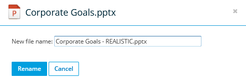 | Manage | Rename | Rename the file. This will open the Rename File popup window:![]() Edit the file name, then click Rename. |