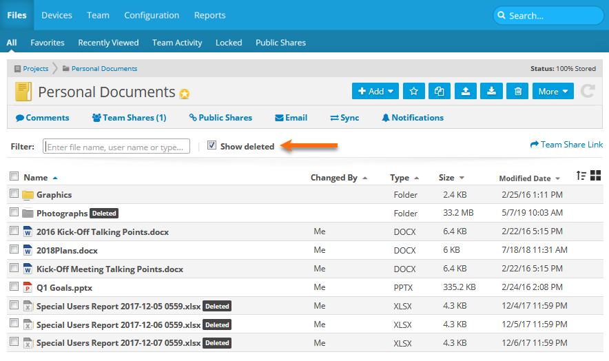 If files or folders have been mistakenly deleted and you are the project owner or a Super Administrator, Recursive Undelete allows you to apply a mass undelete to a folder, including deleted files within sub-folders, that will reinstate all files deleted since a specified time.