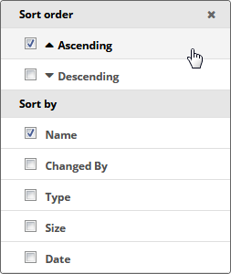 - Check boxes will indicate the current sort order. To control ascending/descending order, just change the selection. To sort by a different column, select the check box for that column.