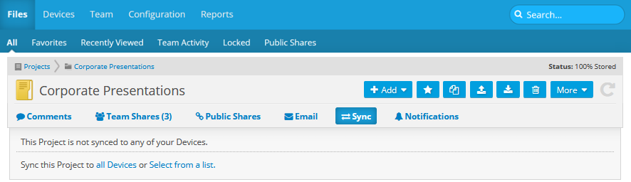 TIP  If you wish to sync only certain folder within a project in order to save local storage space, refer to Selective sync.