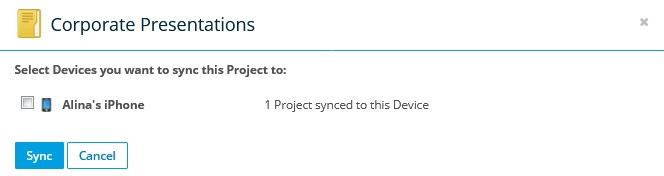 Workplace allows you to specify which projects are synced to your device(s). Syncing and unsyncing can be performed through either Workplace Online or Workplace Desktop.