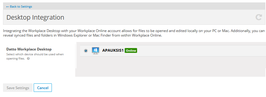 Integrating the Workplace Desktop app with your Workplace Online account allows for files to be opened and edited in the native application on your PC or Mac. Additionally, you can reveal synced files and folders in Windows Explorer or Mac Finder from within Workplace Online.