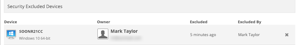 | Excluded | The time at which the device was excluded from security monitoring. |