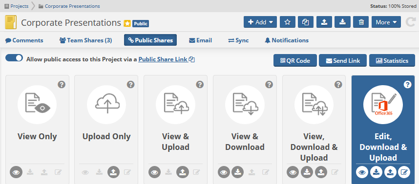 NOTE For detailed information on creating public shares, please refer to Managing project, folder, and file public shares.