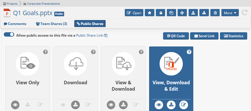 If you're creating a public share for an Office document and you want to allow document editing with Office 365, just select the share option with an Office 365 logo on it.
