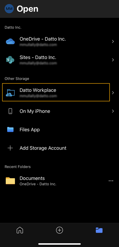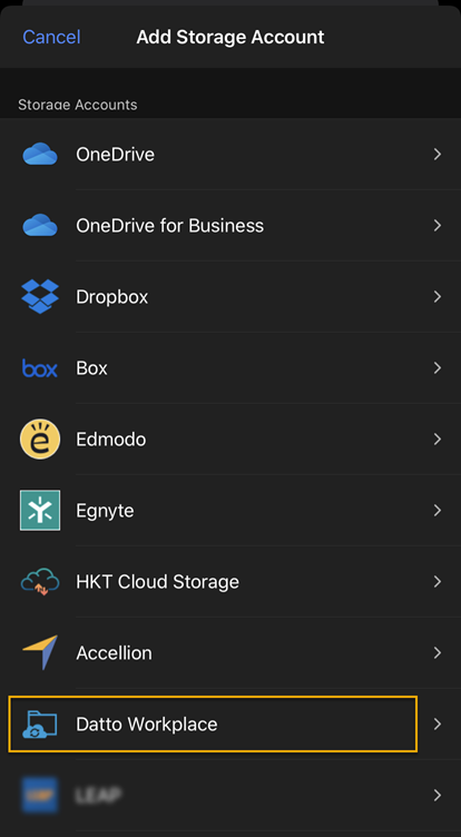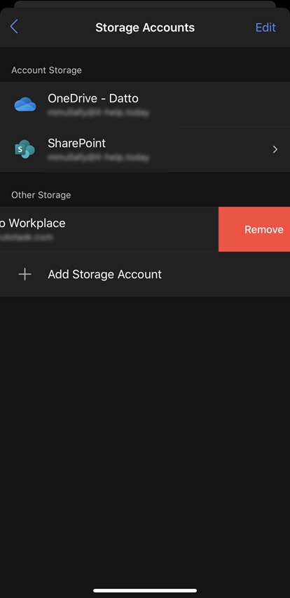 How do I add or remove Workplace as a storage location on my iOS mobile device?