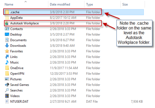TIP If you must keep the .cache folder in its current location, you must move the Workplace folder so that it does not conflict with the .cache folder. For details, refer to Can I move the Workplace folder? If you do this, the issue will be resolved without further action. By moving the Workplace folder, the issue should be resolved and the remaining steps unnecessary.