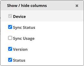 - Select the check boxes corresponding to the columns you want to display. The device list will update automatically. The following columns are available: