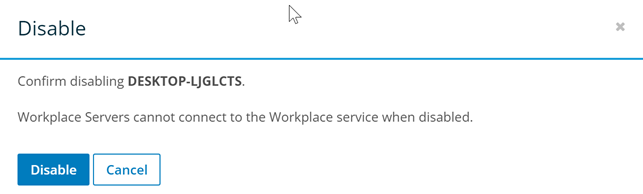 | Status | Indicates whether the device is Connected, Offline, Disabled, or Recycled. If the device has been recycled, this column will display the number of days remaining until it is removed. Regardless of status, this column will always display the number of Workplace Desktop instances connected to the Workplace server. |