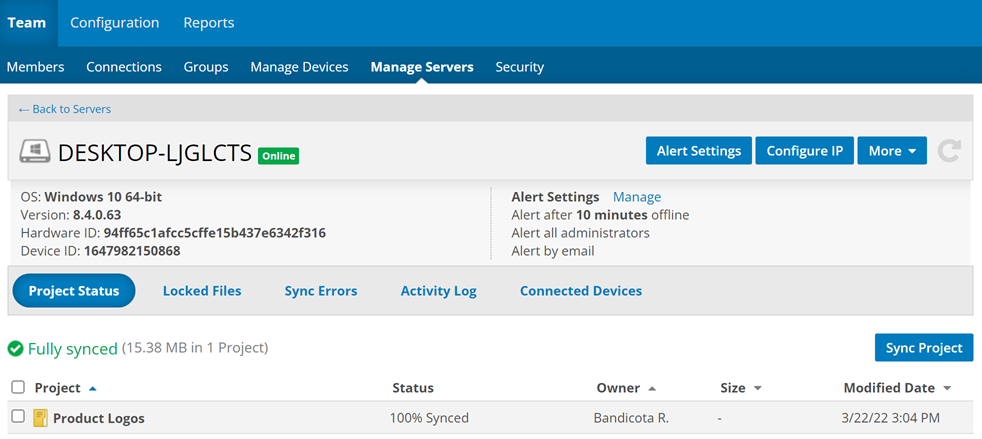 NAVIGATION Workplace Online > Team > Manage Servers > click server