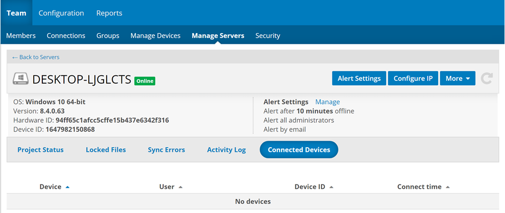 NAVIGATION Workplace Online > Team > Manage Servers > click server > Connected Devices