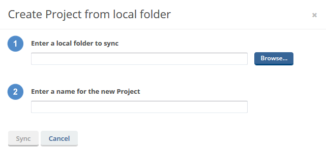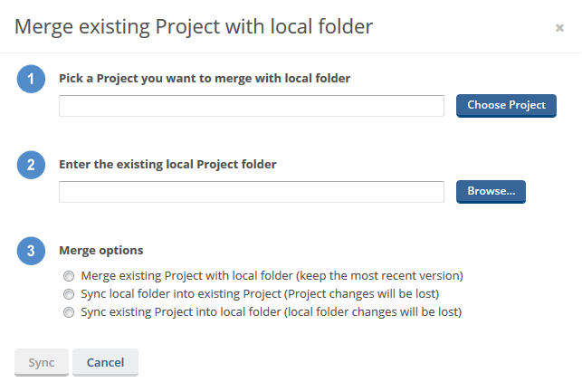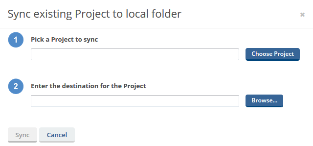 Selecting the Sync Existing Project to Local Folder option will open a window: