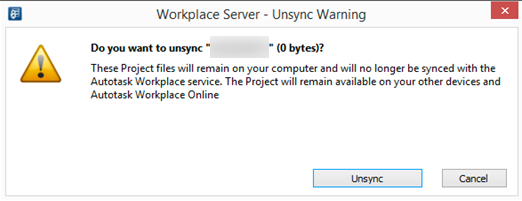 - Right-click the project you wish to unsync and select Unsync. The following popup will display: