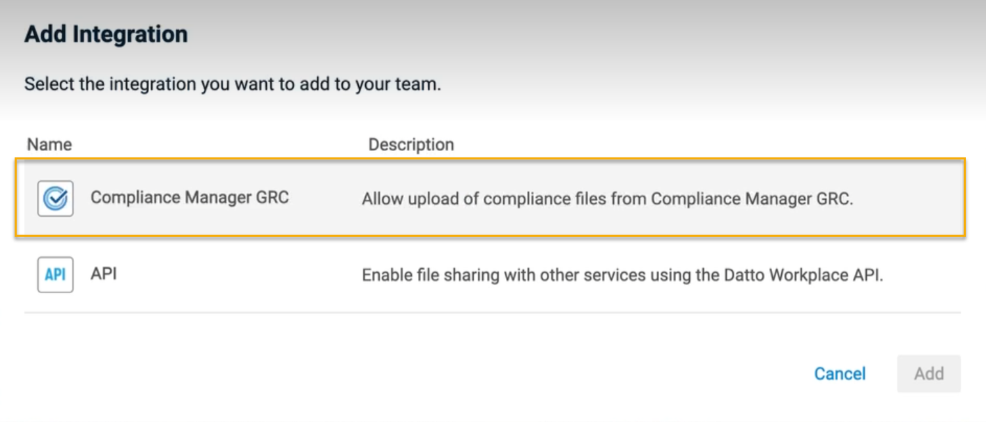 Compliance Manager file storage integration